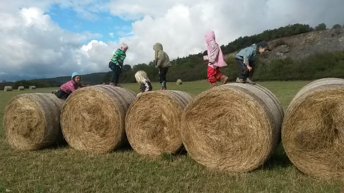 Seběhli jsme na malé hřiště a tam se naobědvali – ano naobědvali, cesta asi kilometr a půl nám totož trvala skoro půl dne, protože na každém kroku bylo co objevovat – povodňový metr na břehu řeky, horolezecké značky a jejich kniha zavěšená na skále v kovovém pouzdře, šnečci a břehy a potůček, kde Markétce zahučela černá čepička, a už už jsme jí vytahovali a uplula nenávratně do řeky a mezitím se házelo lopuchové listí do vody a plulo jak flotila zámořských lodí do dálky… k obědu byl výborný zrníčkový chleba a pomazánka od Tomíkovy maminky, děkujeme!