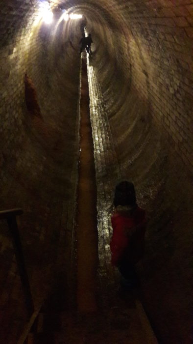 Nu a nakonec jsme se podívali i do podzemních stok, kde bylo snad 10 dlouhých nádrží, kam klesal další kal, než se voda vpustila do řeky. Největší zábava byla utíkat dlouhatánskou kulatou stokou a pak nakonec ještě jsme si směli zařvat do dálky a poslechnout si vlastní ozvěnu.